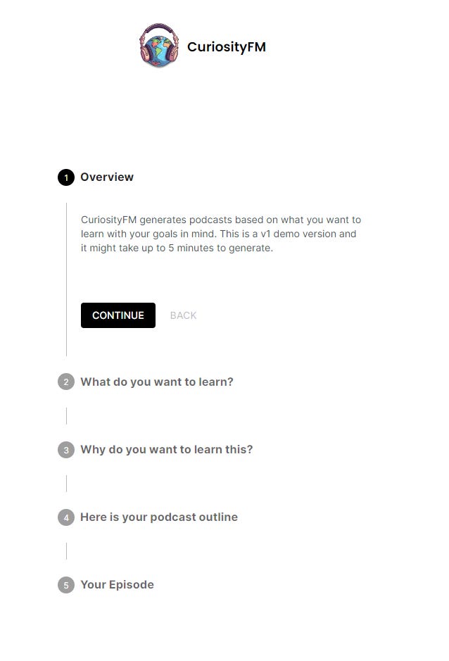This was our attempt at making Learnery more unique and more differentiated from chatGPT. We never really launched it. The unit economics didn’t work out and it was actually pretty boring to listen to, I don’t think I even fully listened to one 15-minute episode.