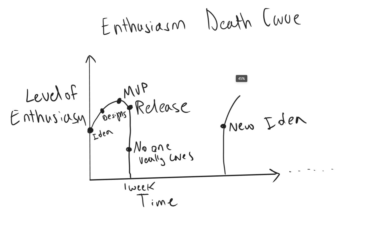 Anyway, Learnery got like 50 users, Podpigeon made 1 sale but we don’t really stick to anything. We definitely followed this curve:
